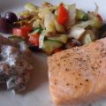 Källa: malinsdiner.blogspot.seI senaste numret av Laga lätt (nr 10/09) hade Melker Andersson ett recept på Falukorv Provencale . Lät väldigt gott och jag har varit supersugen på potatismos ett tag så slog två flugor i en smäll. Som vanligt justerade jag receptet lite. Jag hade bara tomat, lök och dijon mellan skivorna. Istället för provensalsk kryddblandning blandade jag oregano, timjan och hackad persilja. Ovanpå hade jag vanlig gratängost. 1 ring falukorv 1/2 dl dijonsenap 1/2 aubergine 1/2 zucchini 2 tomater 3 vitlöksklyftor 1 msk olivolja 2 msk Herbes de Provance (provensalsk kryddblandning) 1 dl riven parmesanost 1 dl cheddarost Oliver till servering Sätt ugnen på 225 grader Skiva falukorventunt nästan hela vägen ner. Skiva aubergine, zuccini och tomat tunt. Halvera skivorna. Bre på senap och lägg mellan korvskivorna. Pressa vitlök i oljan i en skål, blanda. Stryk balndningen över korven. Krydda med kryddblandningen. Stek korven i ugn 25 minuter. Strö över osten efter halva tiden. Strö på oliver och servera med potatismos. Olje- och kryddblandningen gav lite extra piff och blev fantastiskt gott!! Serverade med fluffigt potatismos med lite muskot i. Mumsfillibaba!