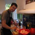 Källa: malinsdiner.blogspot.seÄldste är en tacksam son när det gäller mat, då han tycker om traditionell husmanskost, precis som mor sin. Han jublade över dagens meny: Rotmos med lurad Falukorv. Lurad falukorv det är ett substitut för min barndoms fläskkorv. När jag var liten hörde sig min morfar för, så där på våren, hur mycket gris var och en ville ha till jul. Utifrån detta födde han sedan upp rätt antal smågrisar och på hösten, ungefär så här års, samlades släkten för slakt. (Jag ska bara förtydliga, jag är inte född på 1800-talet) Det var lite högtidligt och väldigt roligt med alla kusiner, mostrar och morbröder, mormor och morfar. Alla vuxna var fullt sysselsatta och vi barn fick hjälpa till om vi ville, i övrigt så lekte vi för fullt. I princip hela grisen togs om hand. Detta skedde på den tiden före EU-inträdet, innan alla lagar och förbud kom till. Det styckades, maldes, stoppades korvar och gjordes syltor, allt med julen för ögonen. Det var i och med detta som årets julförberedelser startade och jag kan verkligen sakna det. Även om jag aldrig begrep varför grisen skulle bada när den var död. I efterhand har jag förstått att det var för att den skulle skållas. Visheten kommer visst med åren. En av korvsorterna som gjordes var fläskkorv, det givna tillbehöret till rotmos. Den kan jag också sakna, i synnerhet när det vankas just rotmos. I min ungdom slog jag en gång till på stort och köpte mig en fläskkorv på livsmedelsbutiken. Det har jag aldrig gjort om! Jag försöker att inte göra samma misstag två gånger och hitintills har det gått bra på fläskkorvsfronten. Lösningen har istället blivit att ta en falukorv av god kvalité, gärna ifrån ett lokalt slakteri, i mitt fall Andersson och Tillman, skiva den och försiktigt sjuda den i vatten tillsammans med fyra lagerblad, 10 kryddpepparkorn och 10 vitpepparkorn. I bästa fall så tror den därefter att den är en fläskkorv, den smakar åtminstone en liten aning mer åt det hållet. Rotmoset gör jag på följande sätt: Rotmos 1,5 kg skalad kålrot, skuren i mindre bitar 8 morötter, slantade 15 potatisar, hela eller halverade 14 dl vatten 2 buljong 2 buljong Koka upp vatten, 2 buljong, kålrot och morot Låt koka i en kvart Tillsätt potatisen och koka i ytterligare 25 minuter Häll av spadet i en bunke och spara till senare Mosa Med en potatisstöt eller med elvispen Tillsätt 2 buljong och spad till önskad konsistens Smaksätt med salt och vitpeppar Servera med senap.