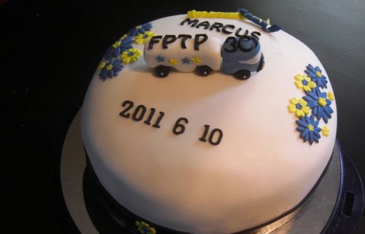 Även min goa grannes son tar studenten idag och till honom har jag gjort denna tårta. Tårtan är gluten- och laktosfri, fylld med hallonmousse, blåbärsmousse och gräddvaniljkräm. dek med sp Eftersom Marcus nyligen klarat sitt E-körkort ville hans mamma att det skulle vara en lastbi [...]