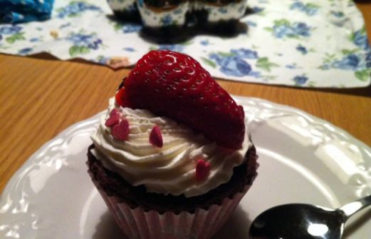 Idag är det alla hjärtans dag. Jag hoppas att ni alla har haft en underbar dag! Efter maten slängde jag ihop kladdkakemuffins, spritsade grädde på och dekorerade med hjärtformat strössel och jordgubbar, mumma! Bakade ni något speciellt denna dag? :)