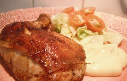Dagens lunch blev kycklingklubba gjord i ugnen, sallad och bea-sås. I vanliga fall brukar jag göra chilikycklingklubbor , men efter veckans magsjuka så tror jag inte att min mage skulle klara av så mycket chili så det fick bli en snällare variant. Har fortfarande svårt att få i mig mat, men lit [...]