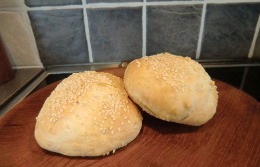 Deg till 2 stora eller 3 mindre hamburgerbröd. 1 dl kallt vatten 1 msk matolja 1 krm salt 2 tsk bakpulver 1 dl riven ost ca 2½ dl dinkelmjöl sesamfrön Ugnsvärme - 225 grader Forma 2 eller 3 st bullar och tryck dit sesamfrön pÃ¥ toppen. Lägg ha [...]
