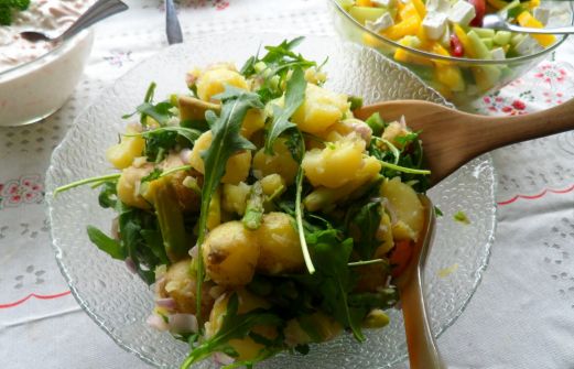 Jättegod potatissallad som jag tyckte var riktigt god fast det var med ruccola :)! Men denna gång gav ruccolan en smak som verkligen passade ihop med övriga ingredienser så det är ett måste i denna sallad! 4 port 750 g färskpotatis 1 röd lök 1 knippe grön sparris 1 p [...]