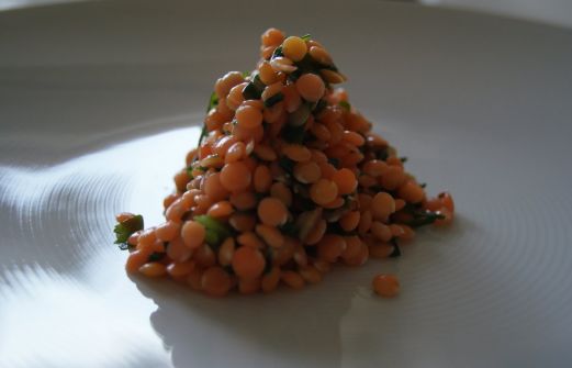 Lätt sallad med frisk smak 2 dl röda linser 1 citron 1/2 pkt frusen gräslök 1/2 pkt frusen persilja 20 st hackade mandlar Salt och peppar Olivolja Skölj linserna i kallt vatten slå sen ordentligt med kokande vatten över dom och lår stå i ca. 1 timme. Sila sen bort vattnet och bla [...]
