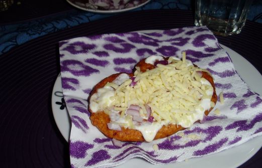 Ungerskt friterat bröd. 16 st, medelstora. Deg 25 g jäst 3 dl ljummet vatten 1 st stor kokt potatis 1 tsk salt 7 dl vetemjöl special (hade inte det hemma så jag tog 4 dl vetemjöl och 3 dl dinkelmjöl.) 1 dl mjöl till utbakning 5 dl olja till fritering Fyllning 1 st pressad vitlökskly [...]