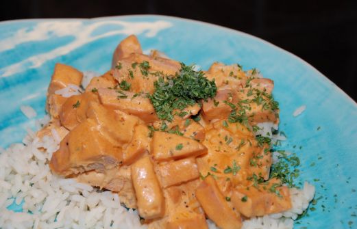 1/2 falukorv 5 dl grädde gul lök chilisås tomatpuré köttbuljongtärning salt och peppar Stek löken och korven. I med grädden, chilisåsen, buljongtärningen och smaka av med salt och peppar. Red med ljus redning. Servera med ris.