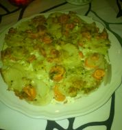 1 kg potatis 1 gul lök 1 rödlök 2 hackade vitlöksklyftor 1 msk olja 2 dl riven ost 1 tsk timjan 1 tsk salt Äggstanning: 2 dl grädde 2 ägg 2 krm salt 1 krm peppar 3 skivade tomater Örtsås: 2 dl kesella eller crème fraiche 3 msk pesto 1 krm salt 1 pressad vitlöksklyfta Sätt ugnen på 200 C. Ska [...]