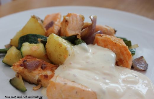 En enkel och snabb vardagsrätt. 4 pers 600 g laxfilé ca 1/2 kg färskpotatis 8 färska gröna sparrisar 2 rödlökar 1/2 zucchini salt, peppar Såsen gjorde jag på creme fraiche och sweet chili sås. GÖR SÅ HÄR: Koka potatisen och låt den svalna. Skär [...]