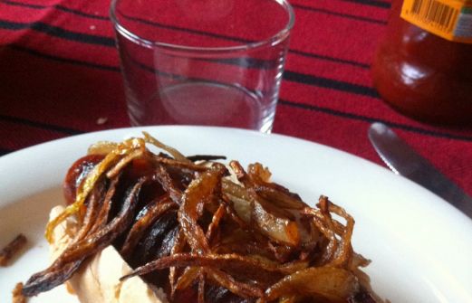 Den hemmagjorda varianten blir smakrik och supergod! Rostad = friterad i detta fall 1 liten lök per 2 pers några nypor salt ca 2 dl olja (jag använder raps) Strimla löken fint, salta och gnid in. Hetta upp en liten kastrull med olja, börja med att lägga i en lökbit, n [...]