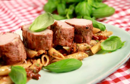 Antal portioner: 4 Ingredienser 600 g fläskfilé 1 citron, saft och skal av svartpeppar nymalen från kvarn 4 msk honung Pastasallad 1 dl chilisås 2 dl god olivolja 3 msk rödvinsvinäger 1 [...]