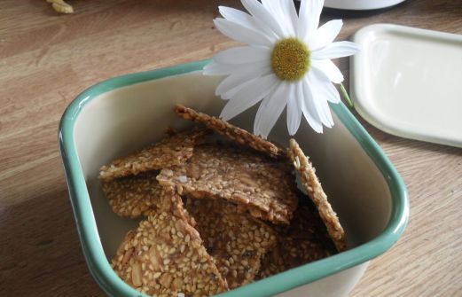 Dinkel och frön i goda kex! En plåt goda frökex 3 dl frön t.ex hälften sesamfrön och hälften solroskärnor 1,5 dl dinkelmjöl 1,5 dl vatten 3 msk raps eller olivolja flingsalt Blanda alla ingredienser utom salt som ska strös på sedan. Låt det hela stå i ungefär 30 min. [...]