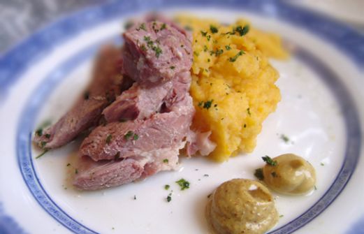 "Recept Per Morberg" Riktigt god och mättande husmanskost. Tar lite tid att tillaga men går alldeles utmärkt att laga i förväg och värmas på före servering! 4 st rimmade fläsklägg, portionsbitar 1 st morot 1 st gul lök purjolök, liten bit rotselleri, liten bit 1 st timjan, fär [...]