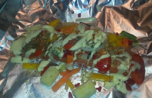 Sätt på ugnen 200 grader. Riv bit av ugn aluminiumfolie, lägg laxfile, ta lite fryspåse av "thai" wok grönsaker, några tomatskivor. Ta nåt kryddor om ni vill ha. Vi hade var flingsalt, mycket dill, timjan, aromat. Pressad vitlök, lite margarin Rulla ihop folie på toppen och lägg på p [...]