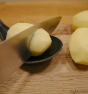 Hasselbackspotatis En festlig potatis som passar till tex grillat/stek kyckling/kött ca 6 port. 1 kg fast potatis (så jämna i storleken som möjligt) ca 50 g rumsvarmt smör 1 tsk salt ca 1 dl ströbröd Skala potatisen och skär den i skivor utan att den faller isär [...]