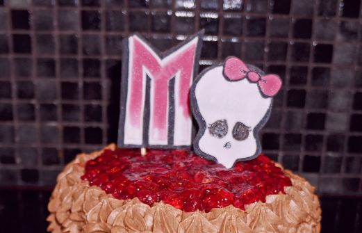 Här är en tårta jag gjort till min yngsta systerdotter på hennes födelsedagskalas. Hon gillar Monster High, så jag gjorde loggan och satte på tårtan. För er som inte vet vad det är, så är det ett tv-program/någon typ av barbiedockor som är populärt bland kidsen. Tårtan består av choklad [...]