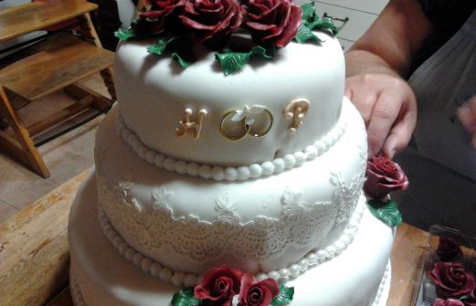 Jag fick förtroendet att baka bröllopstårtan till Helena &Patrik! En trevåningstårta med vanilj och chokladbottnar, ett lager vaniljbavaroise, ett lager hallonbavaroise, spacklade med hallonmarängsmörkräm och täckt med vit sugarpaste. Rosorna & [...]