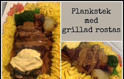 Igår grillade vi rostas. Det grillade köttet la vi på plankor som sedan blev plankstek.