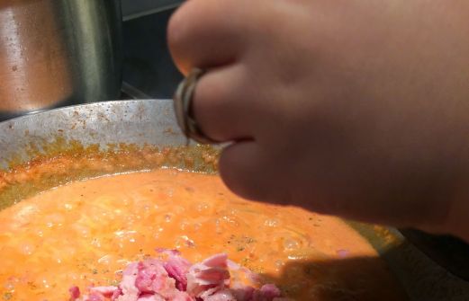 Den här pastarätten med bacon- och tomatsås grejar Liten numera själv. Receptet på Litens pasta med bacon- och tomatsås hittar du här.