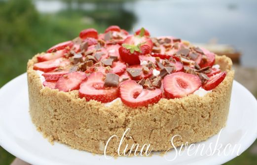 Jordgubbsdröm 300 g digestivekex 100 g smör 1 burk karamelliserad mjölk 5 dl vispgrädde 2 dubbeldaim jordgubbar Spänn fast ett bakplåtspapper i en form med löstagbar kant. Mixa kexen fint i en matberedare. Smält smöret och blanda med kexen. Tryck ut kexen i bottnen och [...]