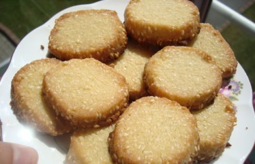 Ingredienser: 200 g smör 4 dl vetemjöl 2 dl sesamfrön 2 dl strösocker 1 msk vatten Gör så här: 1. Smält smöret och låt det svalna. 2. Rör ner mjöl,sesamfrön,socker och vattnet i hop med smöret. 3. Arbeta i hop till en deg och forma till två rullar. 4. Låt dem ligga i kylen i ca 1 [...]