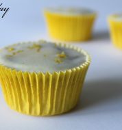 Det har blivit en hel del chokladcupcakes med olika fluffer denna vecka och idag var det dags att prova någonting annat. Citronmuffins Cream cheese frosting Dekorerade med jordgubbskulor