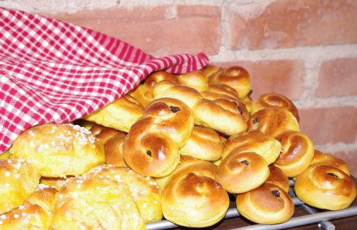 Idag blev det lussebullsbak, mumms. Peter och Astrid stod för de klassiska lussekatterna och jag gjorde lussebullar, man gör små bullar och så trycker man i en blandning gjord på 125g smör, 1 dl socker och 2 tsk vaniljsocker, pensla med ägg och strö på pärlsocker, de kan jag varmt rekommendera. [...]