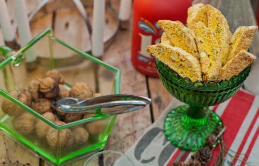 Hårda, söta, med en kraftig smak av saffran och mandel - mmmm. Ett riktigt gott tilltugg till både glögg och kaffe. Till ca 30 biscotti behövs: 1 dl sötmandel / 1 dl naturella pistagenötter / 4 dl vetemjöl / 0,5 dl hemgjort vaniljsocker / 1,5 dl strösocker / skal av en apelsin / 0,5 tsk bakp [...]