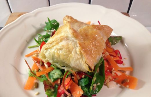Ett frasigt litet paket som bjuder pÃ¥ fantastiska smaker som gifter sig väl med den fräscha salladen. Tips! Laxknytena fungerar även utmärkt som ett tillbehör till soppan. ♨ 4 personer ⏰ ca 1 tim Du behöver: Laxknyten: 4 ark smördeg 4 laxfiléer (á c [...]