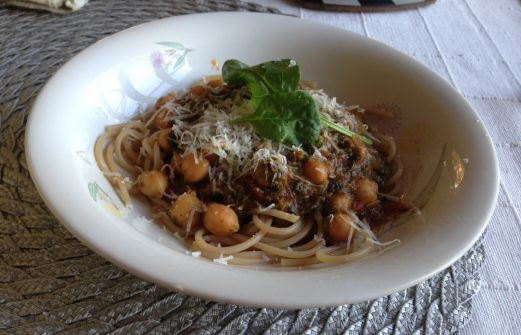 Denna gryta är väldigt god både varm och kall och dessutom väldigt lättlagad. Jag brukar servera den tillsammans med fullkornspasta, men det blir lika gott med vilket tillbehör som helst; ris, nudlar, couscous etc. Dessutom kan man byta ut kikärtorna mot t.ex. röda linser.