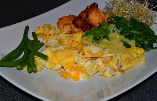 Vi åt äggröra hela familjen idag fast barnen fick korv till,