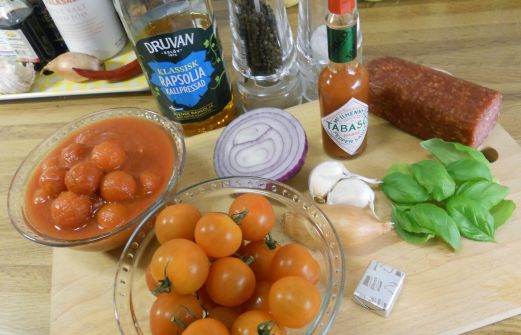 Idag var en sån dag då vi öppnade kylskåpet hos Petra och det var rätt tomt. Men så länge vi har tomater så kan vi fixa det mesta. Det fick bli en pastasås med salami, yummie! Du kan med fördel låta såsen stå och koka en timma (eller längre, bara du häller på lite mer vätska) om du inte har brå [...]