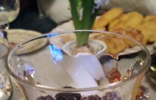4 port 100 g vit choklad 2 dl vipsgrädde 1 paket saffran 2 äggulor (rumtemp) Garnering björnbär (strö socker på bären så inte blir surt). Smält chokladen försiktigt över ett vattenbad, låt svalna en stund. Vispa grädden halvhårt och rör därefter i saffranet. [...]