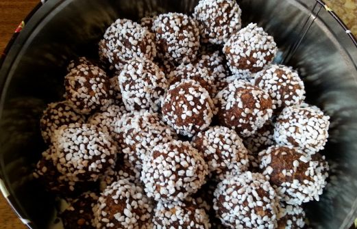 Norrbygodis (chokladbollar) 100 g margarin 1 1/2 dl strösocker 1 msk vaniljsocker 4 dl havregryn 2 msk kakao 2-3 msk kallt kaffe Blanda dem ihop i bunke. Forma dem till runda bollar och rulla bollar i faten med pärlsocker eller strössel. Mums mums Ha en [...]