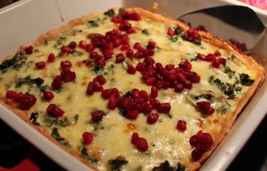 En av rätterna på lördagens buffé var en grönkålspaj som jag toppade med lite granatäppelkärnor. Jag har ofta minst en grönsakspaj på buffébord, tycker det är ett perfekt tillbehör till kött men även gott som det är.