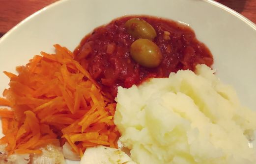 Ett recept från Linas matkasse. Skumt med tomatsåsen till, tyckte inte riktigt att det passade ihop. 4 portioner 250 g morötter Grekisk tomatsås: 1 rödlök 1/2 tsk timjan 1 frp krossade tomater 1 tsk torkad oregano 1 frp snackoliver 2 msk olivolja 1 vitlöksklyfta 1 msk tomatpuré 1 dl vatten 1 tä [...]