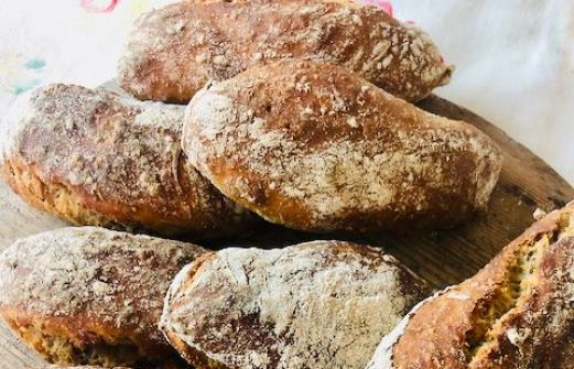 Det här brödet är ett grövre smakrikt småbröd som jäses över natten. Recept 100 g grovt rågmjöl 400 g rågsikt 1 tsk torrjäst 2 tsk salt 2-3 msk mörk sirap 4 dl vatten ev. brödkryddor Gör så här: Blanda ihop rågmjöl, rågsiktsmjöl, torrjäst, salt, sirap och eventuellt kryddor. Häll i 4 dl vatten [...]