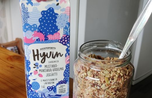 Jag tog sista fröknäcke ur knäckebrödslådan och såg hur mycket gott som lossnat från brödet och bara låg kvar på botten och frestade, så jag tog mej en portion yoghurt och tömde på fröknäckeresterna och det var gudomligt gott! Det ena ger det andra så jag letade efter ett granolarecept och hitt [...]