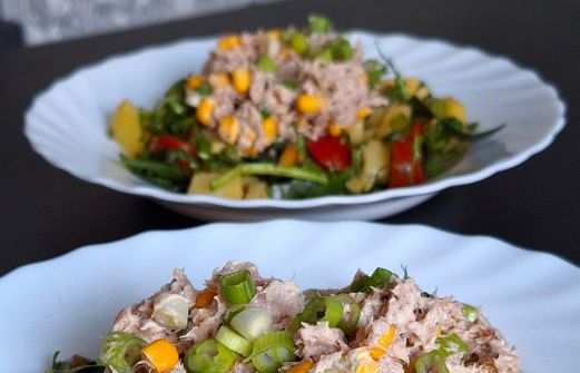 Blanda en krämig röra med tonfisk och majs och servera en fransk potatissallad till. Enkel och prisvärd vardagsmat! Potatissallad 400 g delikatesspotatis 125 g små tomater 2 salladslökar 1 msk olivolja 1 msk vitvinsvinäger salt och peppar 35 g grönsallad Tonfiskröra 200 g tonfisk i vatten 150 [...]