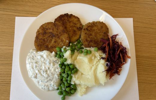 Ca 8 st. Fiskwallenbergare: 500 g fiskfärs 1 st. ägg 1 dl vispgrädde 0,5 dl ströbröd 1 tsk salt 1 krm finmalen vitpeppar smör till stekning ströbröd/panko till stekning Potatispuré: 1 kg mjölig potatis 3,4 – 4 dl mjölk 2 krm vitpeppar 1 – 1,5 tsk salt 50 g [...]