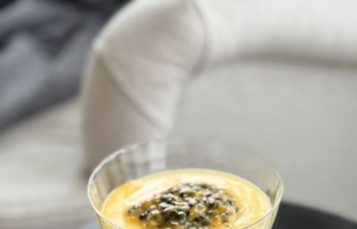 1 dl saft från passionsfrukt utan kärnor (ca 15st frysta kuber som tinats upp) 6 dl vispgrädde 2 dl strösocker Valfri topping Sila saften från passionsfrukten genom en finmaskig sil ner i en bunke för att få bort alla kärnor. Mät upp saften till 1 dl. Ställ åt sidan. Häll upp grädde och socker [...]