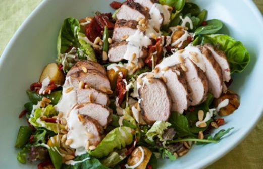 2 dl Crème Fraîche Gourmet Sparris 4 kycklingfiléer 300 g potatis 2 msk olivolja 100 g sockerärtor 3 msk pinjenötter 10 soltorkade tomater blandad sallad salt peppar Betyg: Antal röster: 0 Ingår i kategorierna Huvudrätt Gör så här! Sätt ugnen på [...]