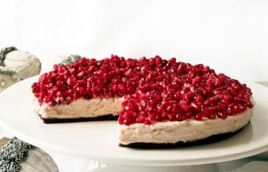 Botten: 210 g chokladkex med chokladfyllning 30 g smör, smält Mousse: 6 st gelatinblad 2 dl + 2 msk Vispgrädde ½ dl socker 1 dl Vaniljyoghurt Jordgubb 3 st äggulor 250 g jordgubbar, frysta 2 st äggvitor Garnering: 2 stora granatäpplen Betyg: Antal röster: 3 [...]