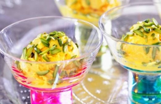 Ingredienser 5 dl Arla ® vispgrädde 1 dl strösocker 1 pkt saffran 4 st äggulor 1 ⁄ 2 msk rosenvatten 2 tsk vaniljsocker 1 msk pistagenötter Gör så här: Koka upp grädde och strösocker. Tillsätt saffran, rör om och ta kastrullen från värmen. Rör ner äggul [...]