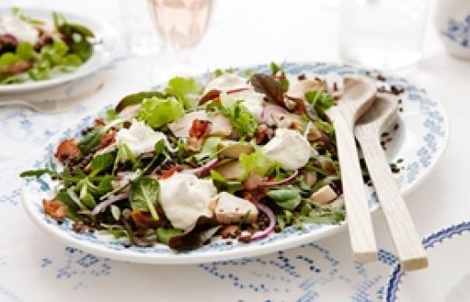 Ingredienser 1 st grillad kyckling eller stekt 140 g rökt fläsk eller bacon 1 st röd lök 1 msk Arla ® Smör-&rapsolja 250 g blandad grönsallad 2 dl kokta linser 1 msk balsamvinäger 2 dl Arla Köket ® crème fraiche gourmet rostad vitlök&timjan Gör så här: Be [...]