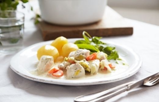 Ingredienser 400 g kycklingfiléer 400 g morötter 1 st liten purjolök 1 1 ⁄ 2 dl vatten 1 msk konc kycklingfond 2 dl Arla Köket ® crème fraiche 1 dl hackad färsk dill 2 krm svartpeppar 1 tsk vit balsamvinäger salt Gör så här: Skär kycklingfiléerna i bi [...]