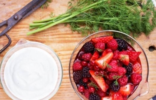 Ingredienser 5 dl blandade färska bär 1 ⁄ 2 dl rÃ¥socker 1 ⁄ 2 dl vatten rivet skal och saft av 1 ⁄ 2 st lime 1 tsk stötta dillfrö 2 dl Arla Köket ® crème fraiche 1 tsk vaniljsocker Gör så här: Koka upp socker och vatten. Tillsätt limesaft [...]