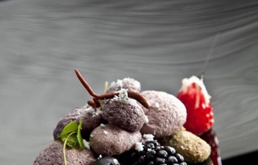 Ingredienser Blåbärsmousse 3 g gelatin 100 g blåbärspuré 40 g Socker 50 g matlagningsyoghurt 50 g vispad grädde Maränger 60 g äggvita 45 g Socker 80 g Socker ett par droppar bläckfiskbläck Hallon [...]