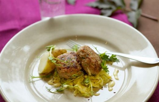 600 g fläskfärs 1 finhackad gul lök 2 klyftor vitlök 1 dl ströbröd 3/4 dl Mjölk 1 1/2 dl riven ost, Allerum Präst 1/2 dl ansjovis rivet skal och saft av 1 citron 3/4 dl hackad persilja 2 ägg 1 tsk salt 1/2 tsk mald vitpeppar Gräddkokt vitkål: 1/2 vitkålshuvud 1 hackad schalottenlök 1 dl Visp [...]