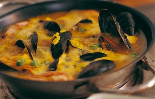 2 liter vatten 4 fiskbuljongtärningar 1 stor gul lök 1 tomat 1 röd paprika 2 vitlöksklyftor 4 dl rundkornigt ris 1/2 g saffran 400 g fiskfilé t ex torsk eller lax 200 g musslor 2 dl ärter 100 g skalade räkor Aioli: 3 dl Gräddfil 2 pressade vitlöksklyftor 1 krm saffran salt och peppar Bety [...]
