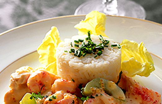 Antal portioner: 4 Ingredienser 500 g skalade jätteräkor 4 tomater 3 vitlöksklyftor 1 zucchini smör 2 dl grädde salt och malen svartpeppar 2 msk löjrom 1/2 dl finskuren grä [...]